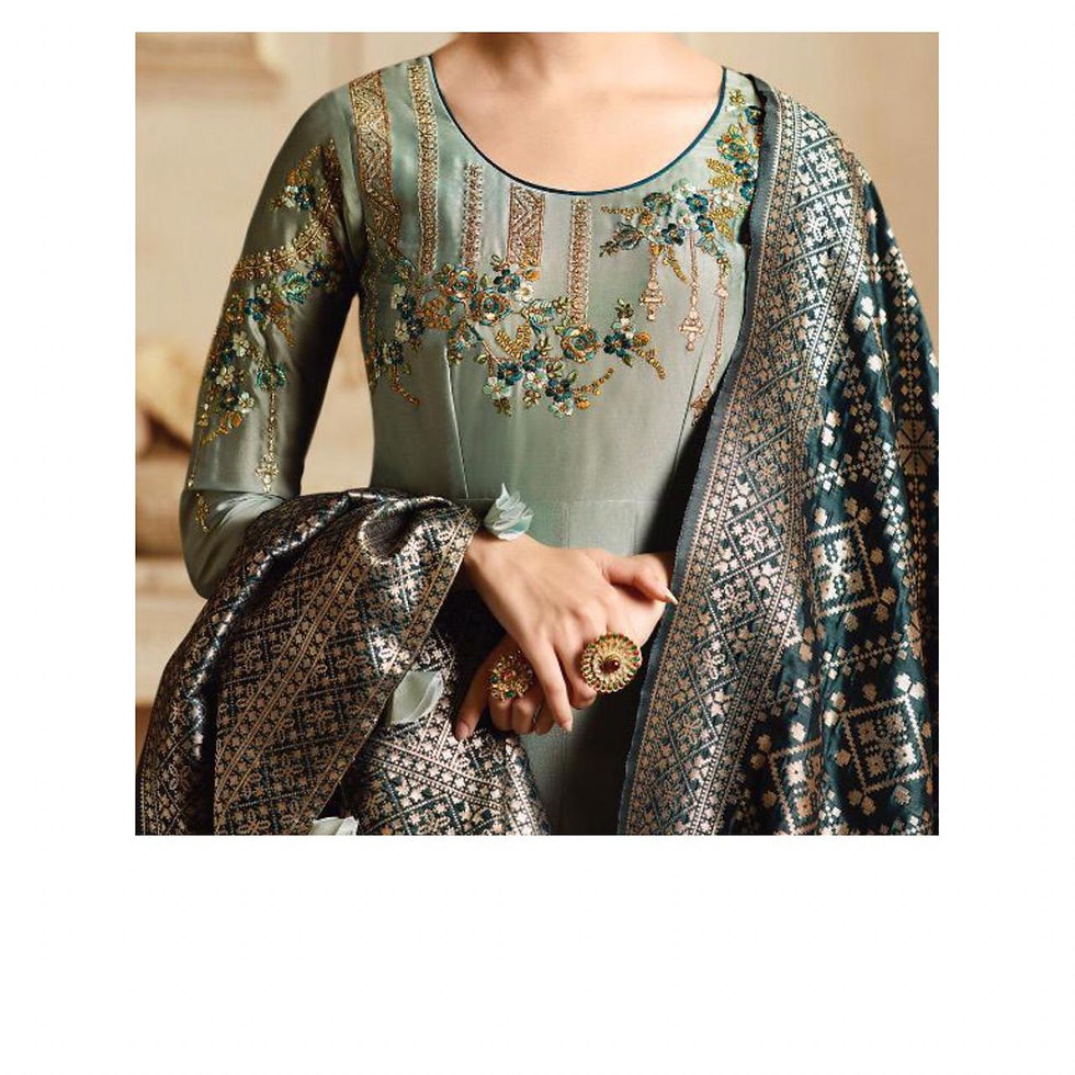 Heavy Grey Anarkali suit with banarasi dupatta